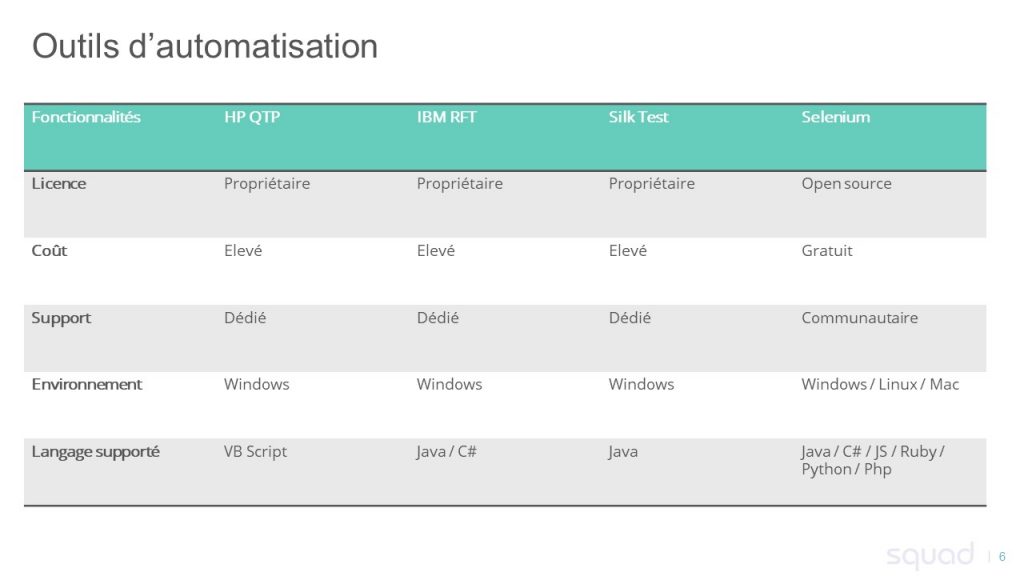 HP QTP ; IBM RFT ; Silk Test ou Sélénium … les solutions d’automatisations de tests sont aujourd’hui plurielles et ont chacun leur spécificité.