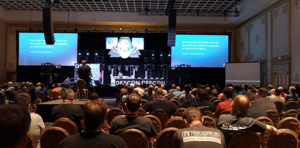 J’ai également assisté à 2 conférences ; la 1ère m’intriguant par les possibilités offertes : l’injection d’un payload sur un microcontrôleur pour mettre en place une backdoor. La 2ème m’intéressait plus pour des aspects personnels, en tant que photographe : la possibilité d’injection d’un ransomware sur un Reflex numérique.