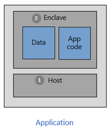 - L’hôte est le composant « non approuvé ». Votre application enclave s’exécute sur l’hôte. L’hôte est un environnement non approuvé. Lorsque vous déployez du code d’enclave sur l’hôte, ce dernier ne peut pas accéder à ce code.
