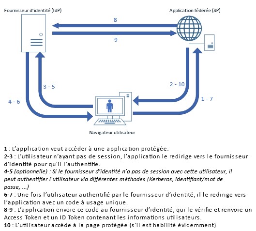 Figure 4 : Schéma des échanges lors de l'Auhtorization code flow (OAuth 2.0/OIDC)