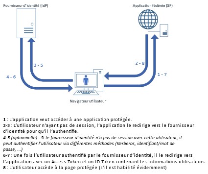 Une fois que le fournisseur d’identité a reçu la requête de l’application, celui-ci va authentifier l’utilisateur. Pour cela, il pourra se baser sur plusieurs critères (identifiant/mot de passe, jeton Kerberos, notifications mobiles, réutilisation d’une session existante, …).
